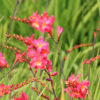 Deze klompvormige winterharde crocosmia heeft grote rechte stelen met oranjerode bloemaren.