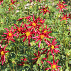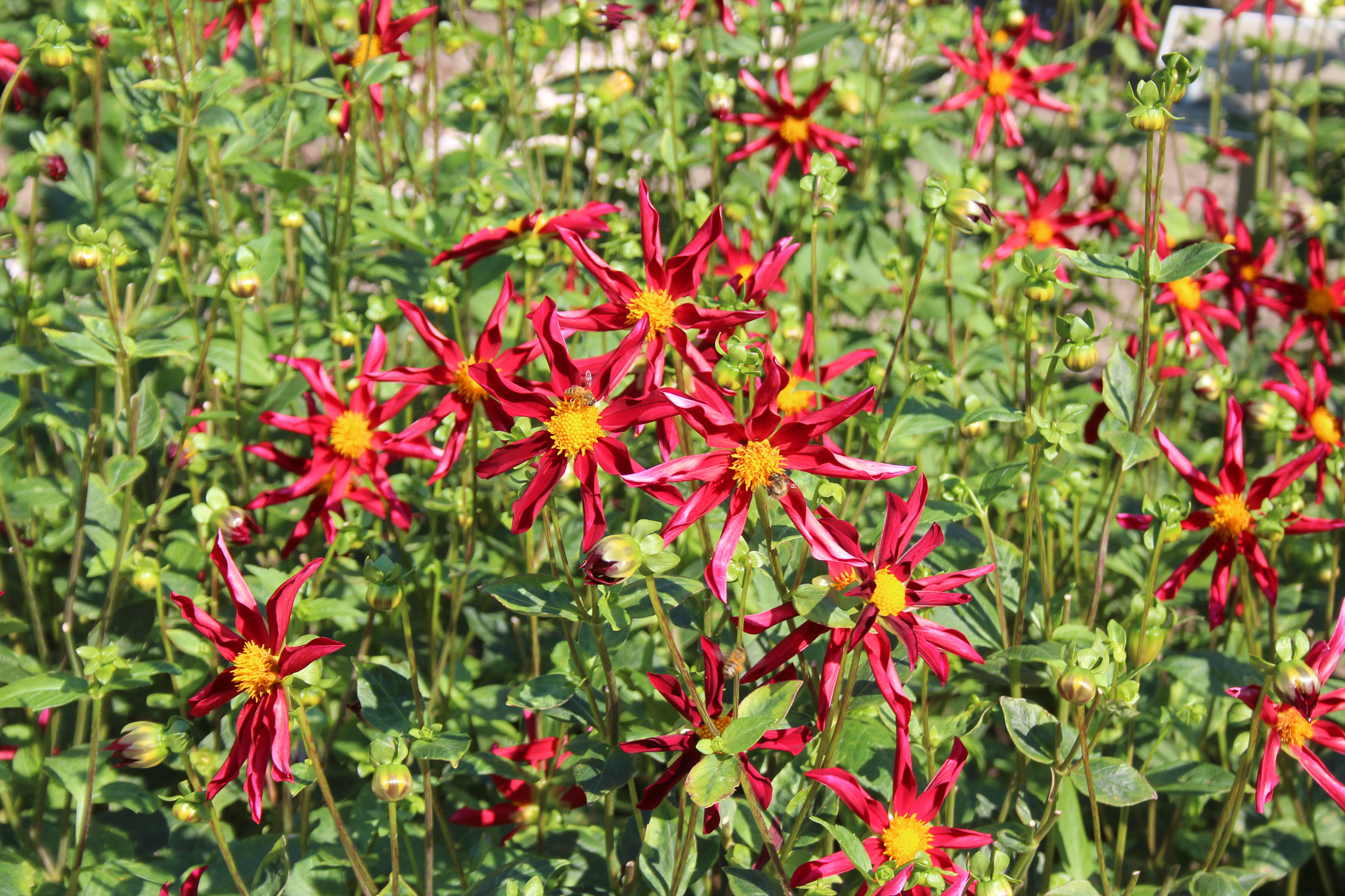 De rode Honka , Mary Schnugg heeft helder rode stervormige bloemen met een vleugje magenta aan de buitenkant.